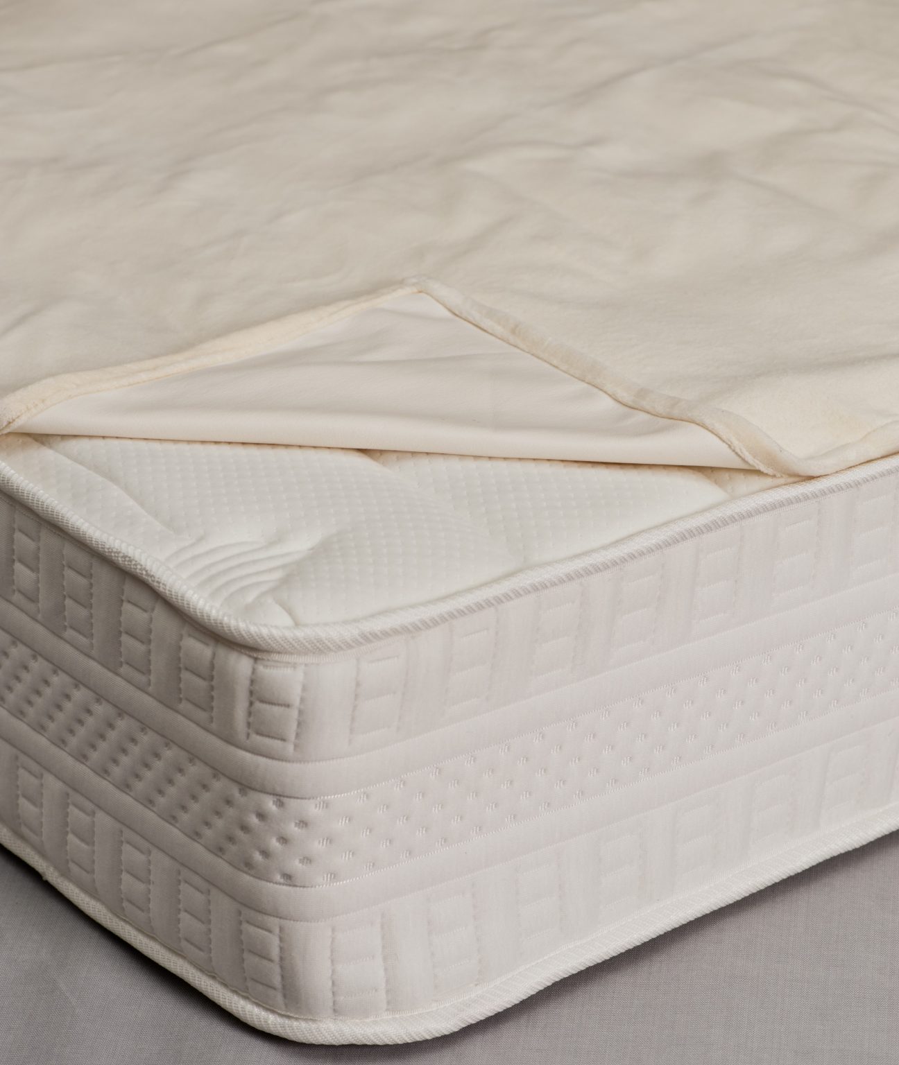 Waterproof terry mattress protector with a towel-like texture, featuring a special waterproof membrane on the underside that repels moisture.