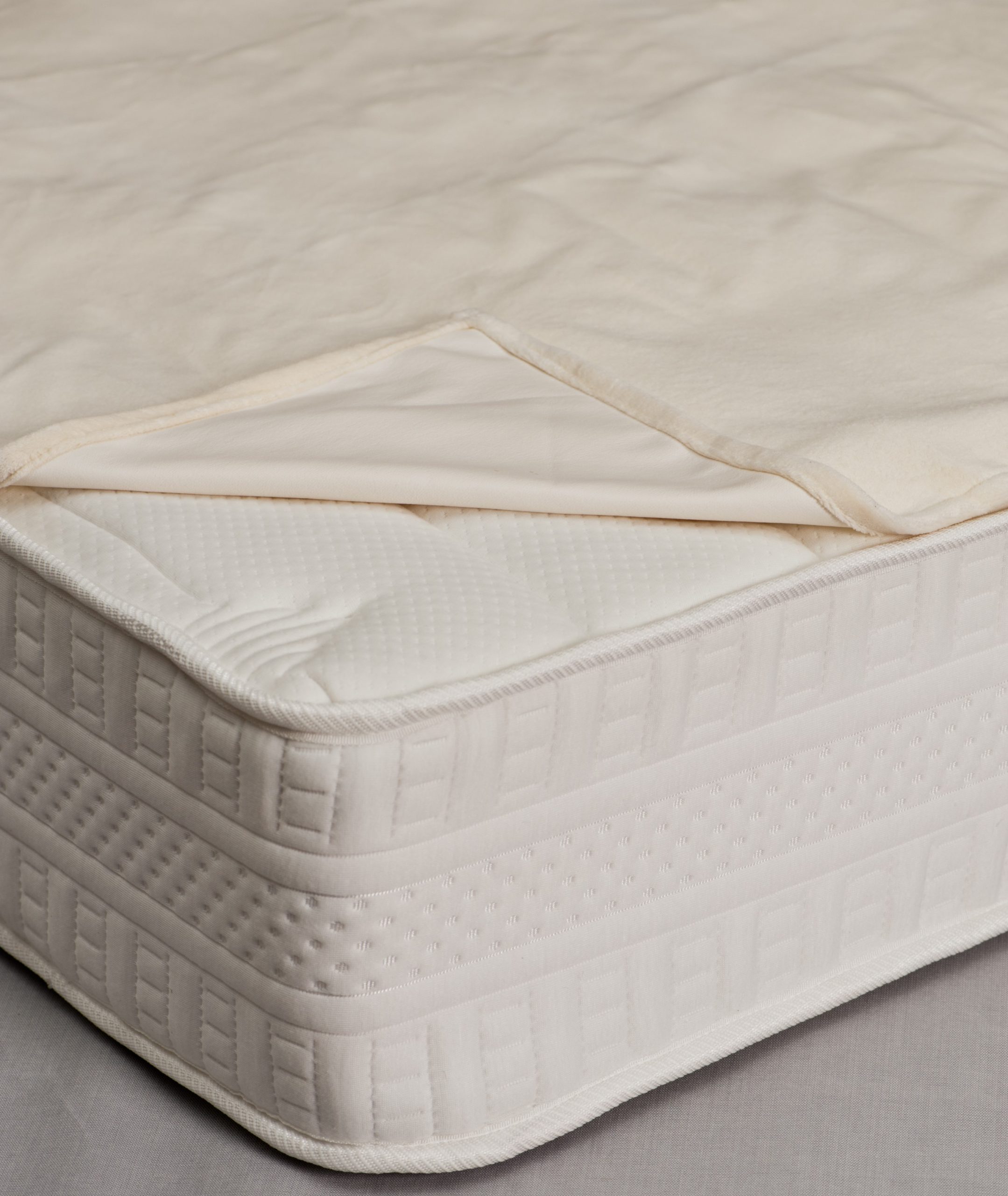 Velvet-textured waterproof mattress protector with an exceptionally soft feel and high durability, featuring a special waterproof membrane on the underside that repels moisture.